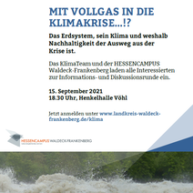 Das KlimaTeam und der HESSENCAMPUS Waldeck-Frankenberg laden ein zu einer Vortragsveranstaltung rund um die Themen Klimawandel und Nachhaltigkeit ein.