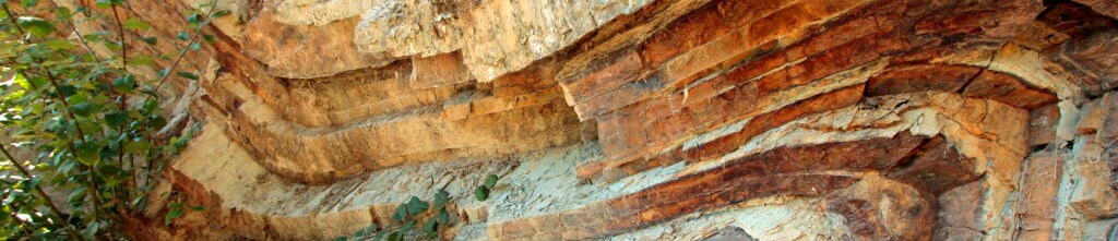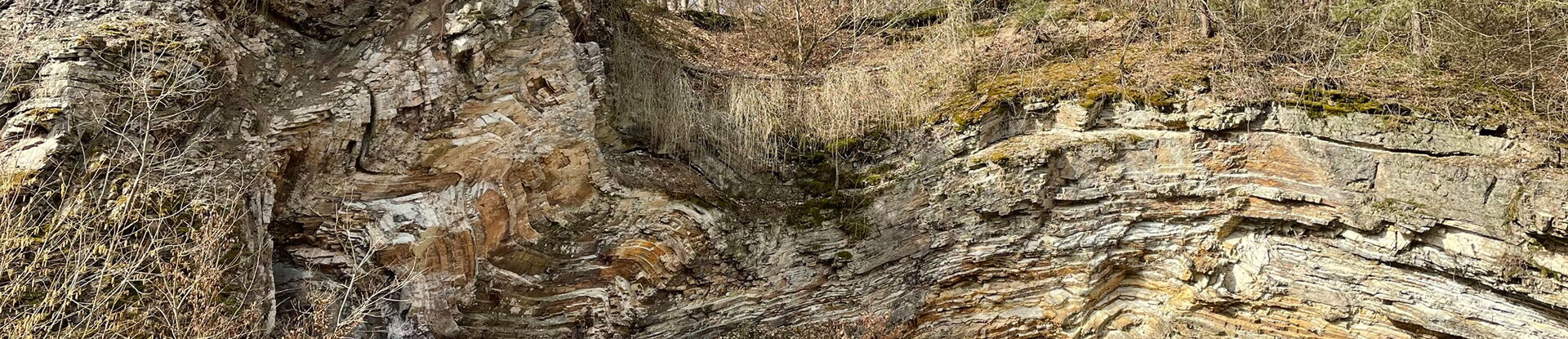 Die ehemals horizontal gelagerten, paläozoischen Gesteinsschichten, wurden durch die tektonischen Kräfte während der Gebirgsbildung zu diesem lehrbuchhaften Sattel geformt.