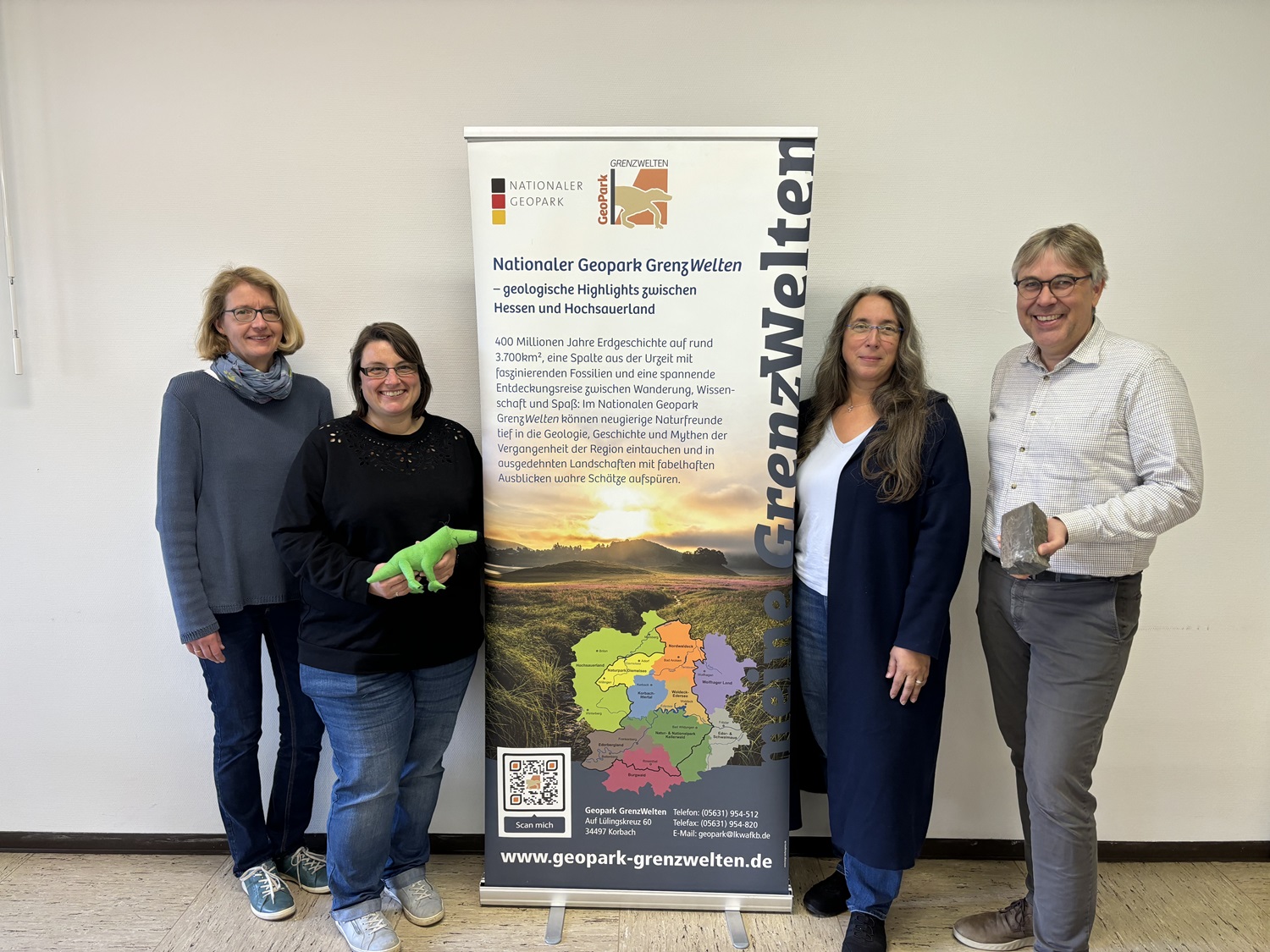 Ein großes Thema war in 2024 die erfolgreiche Rezertifizierung zum Nationalen Geopark für weitere fünf Jahre. Im digitalen Bereich ist ein neues Highlight mit den DinoSpuren in Nehden entstanden. Dort kann man auf digitale Schnitzeljagd gehen und an der Dinosaurier-Fundstelle den Iguuanodon mittels Augmented Reality zum Leben erwecken. Das Geotop des Jahres, der „Adorfer Bänderschiefer“ ist aufgewertet worden und hat eine neue informative Schautafel bekommen. Außerdem hat der Geopark bei zahlreichen Veranstaltungen mitgewirkt, wie dem Hessentag in Fritzlar, Bergwerks-Jubiläen und natürlich gab es auch wieder ein umfangreiches Führungsprogramm, mit vielfältigen Angeboten für Groß und Klein.